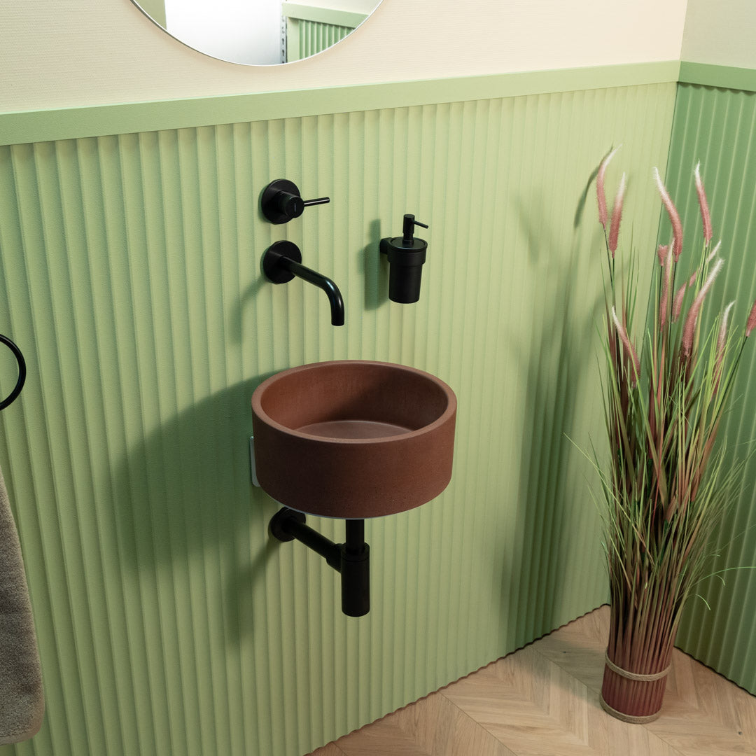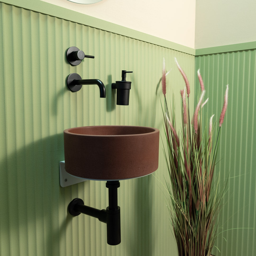 Mini Globe es un fregadero artesanal de hormigón con una forma esférica suave y un refinado acabado mate, ideal para interiores modernos y clásicos. Fabricado con GFRC de alto rendimiento, ofrece durabilidad a largo plazo y funcionalidad cotidiana. Su forma compacta de 32 cm lo convierte en una opción destacada para la instalación sobre encimera en cuartos de baño donde el estilo y la practicidad son importantes.