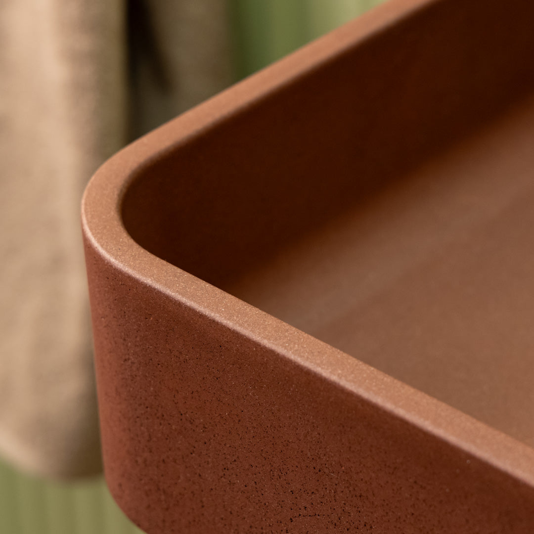 Fabricado a mano con hormigón de primera calidad, el lavabo Lavabo Boxy presenta un limpio diseño cuadrado que aporta estructura y equilibrio a los cuartos de baño modernos. Su suave acabado mate y sus líneas nítidas lo hacen perfecto para interiores contemporáneos o industriales. Cada lavabo es único, con sutiles variaciones de tono y textura que resaltan su carácter artesanal. Diseñado para una fácil instalación en la encimera, ofrece durabilidad y un estilo discreto.