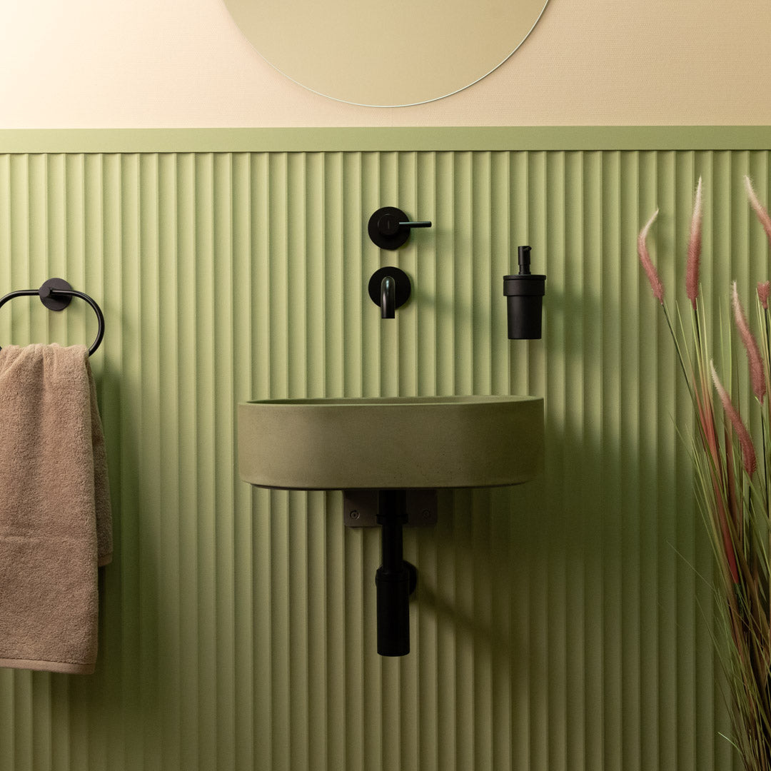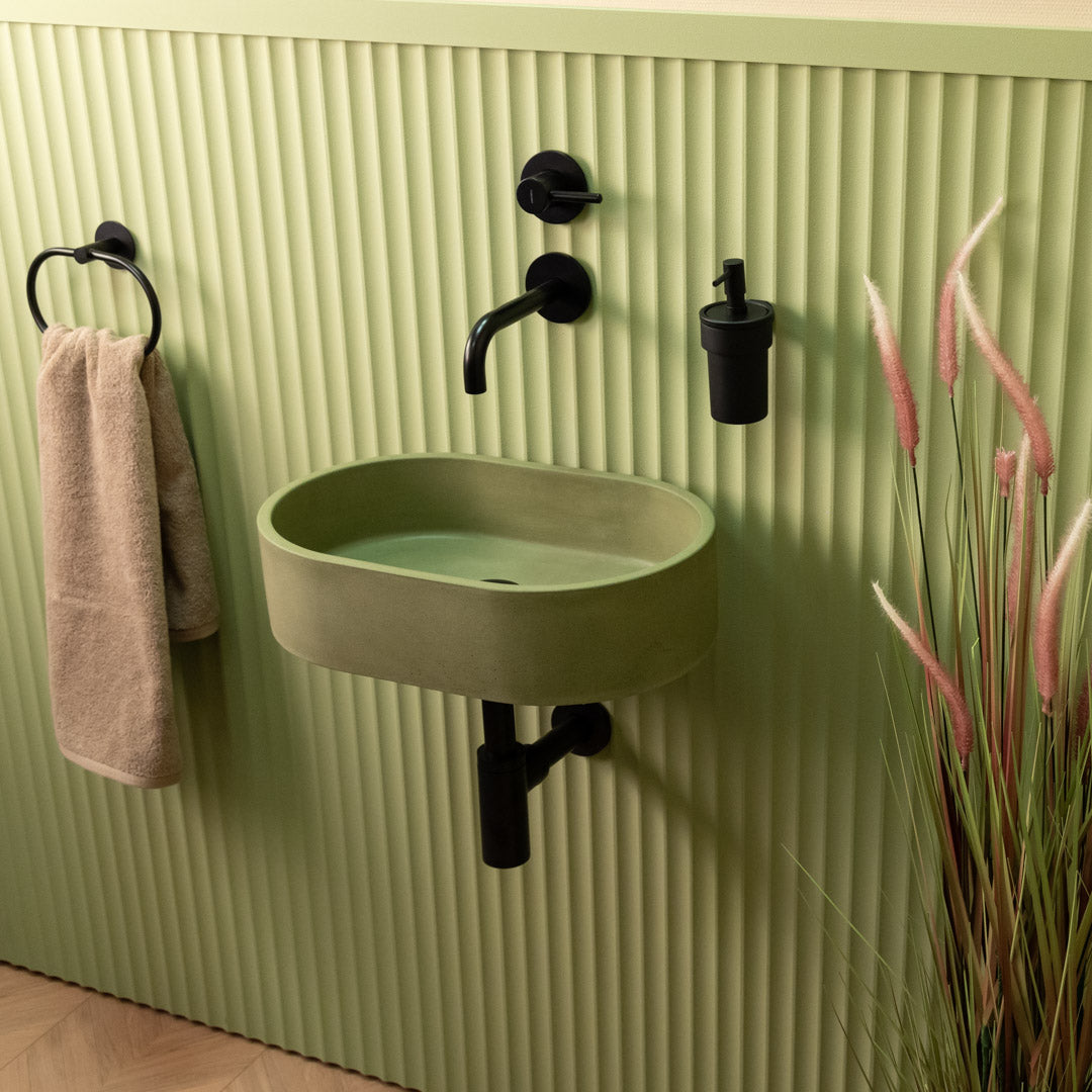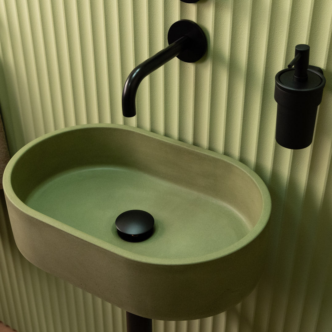 Fabricado a mano con hormigón de primera calidad, el Mini Halo presenta un diseño ovalado compacto que se adapta perfectamente a los espacios de baño más pequeños. Su suave acabado mate y sus contornos limpios aportan un toque refinado y moderno a cualquier interior. Cada lavabo es único, mostrando variaciones naturales de tono y textura. Diseñado para una fácil instalación en la encimera, ofrece tanto durabilidad como equilibrio visual en un formato que ahorra espacio.