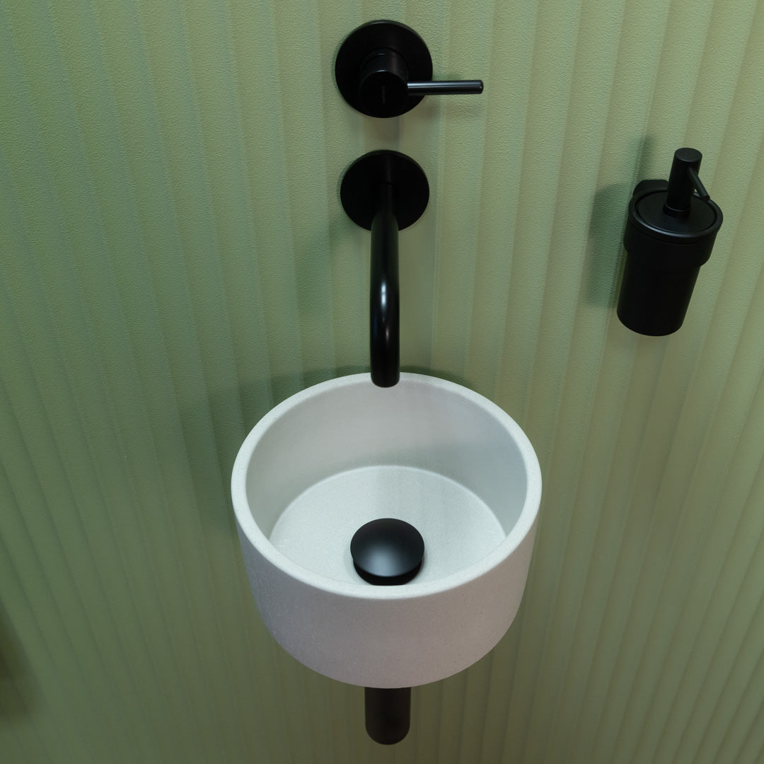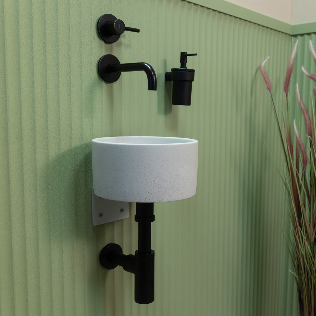 El Tiny Tub es un lavabo de hormigón compacto y artesanal diseñado para cuartos de baño modernos con espacio limitado. Su limpia forma ovalada de 25 cm y su suave acabado mate ofrecen un aspecto minimalista que combina bien con interiores contemporáneos. Fabricado en resistente GFRC, garantiza un rendimiento duradero sin renunciar al estilo. Diseñado para una fácil instalación en la encimera, es una solución práctica y refinada para espacios reducidos.